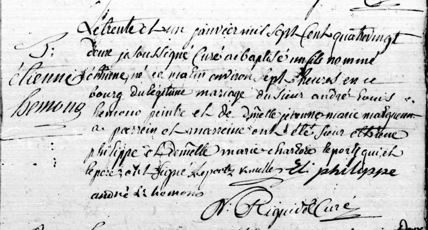 | Baptême HEMONO Etienne - 1782 - Baud |