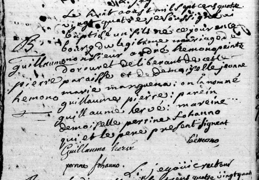 | Baptême HEMONO Guillaume Pierre - 1784 - Baud |