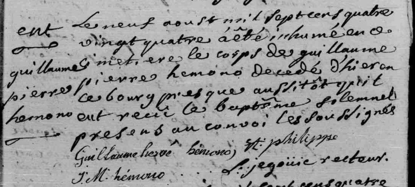 Sépulture HEMONO Guillaume Pierre - 1784 - Baud |