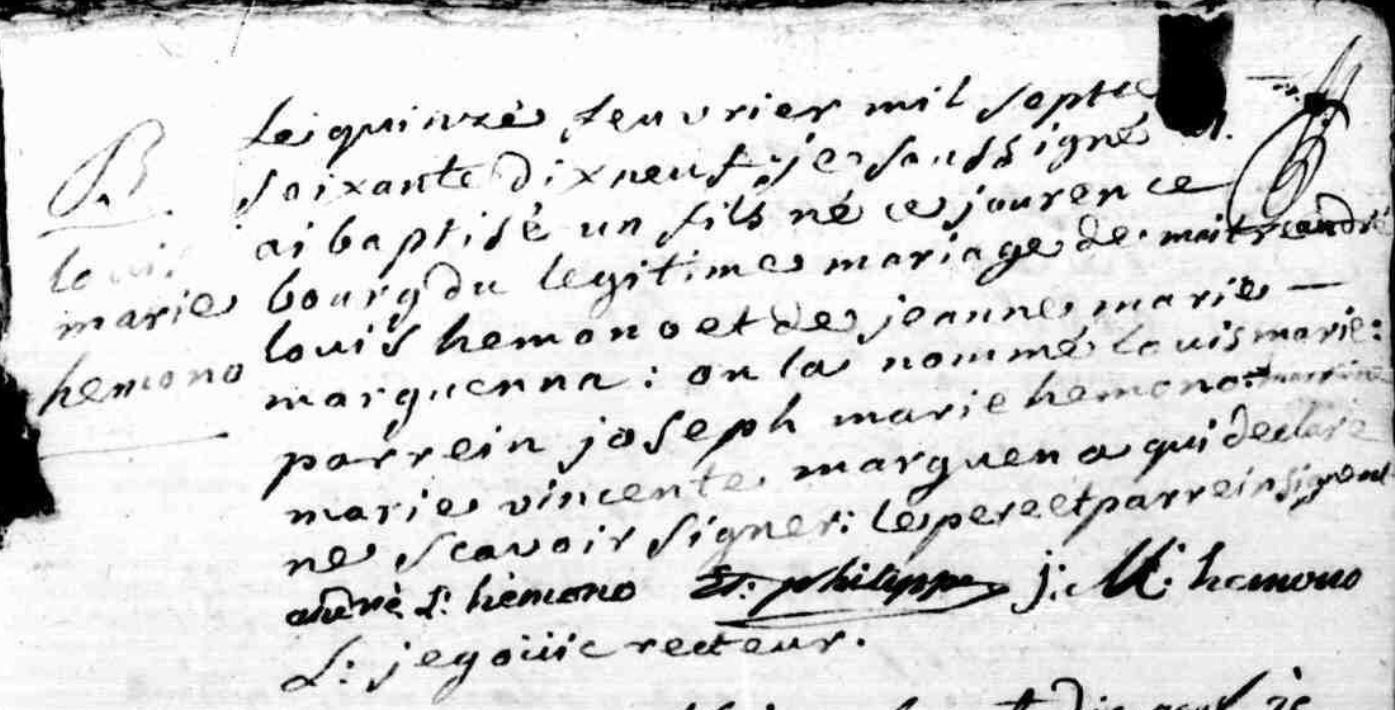 | Baptême HEMONO Louis Marie - 1779 - Baud |