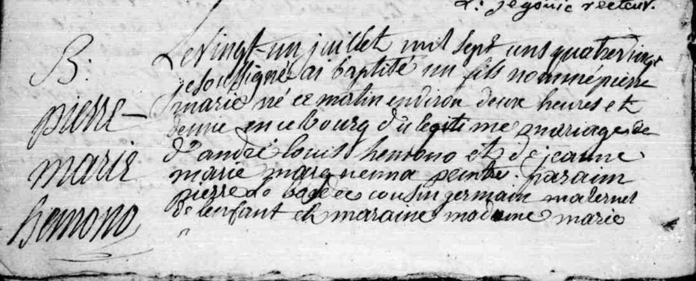 | Baptême HEMONO Pierre Marie - 1780 - Baud - 1 |