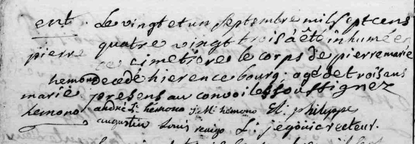 Sépulture HEMONO Louis Marie - 1783 - Baud |