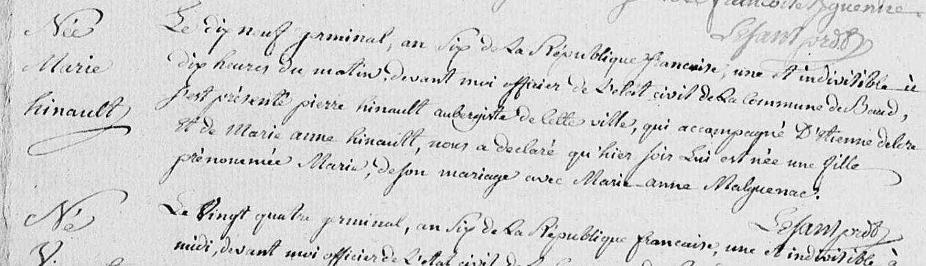 | Naissance HINAULT Marie - 1798 - Baud |