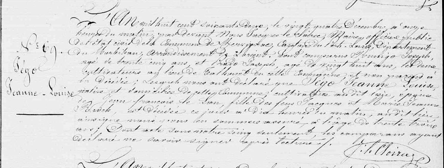 | 1. JEGO Mathurine Naissance : Date : 12/05/1798 Lieu : Riantec (56), Kerner |