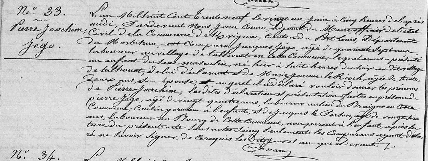 | 4. JEGO Yves Naissance : Date : 26/02/1770 Lieu : Riantec (56) |