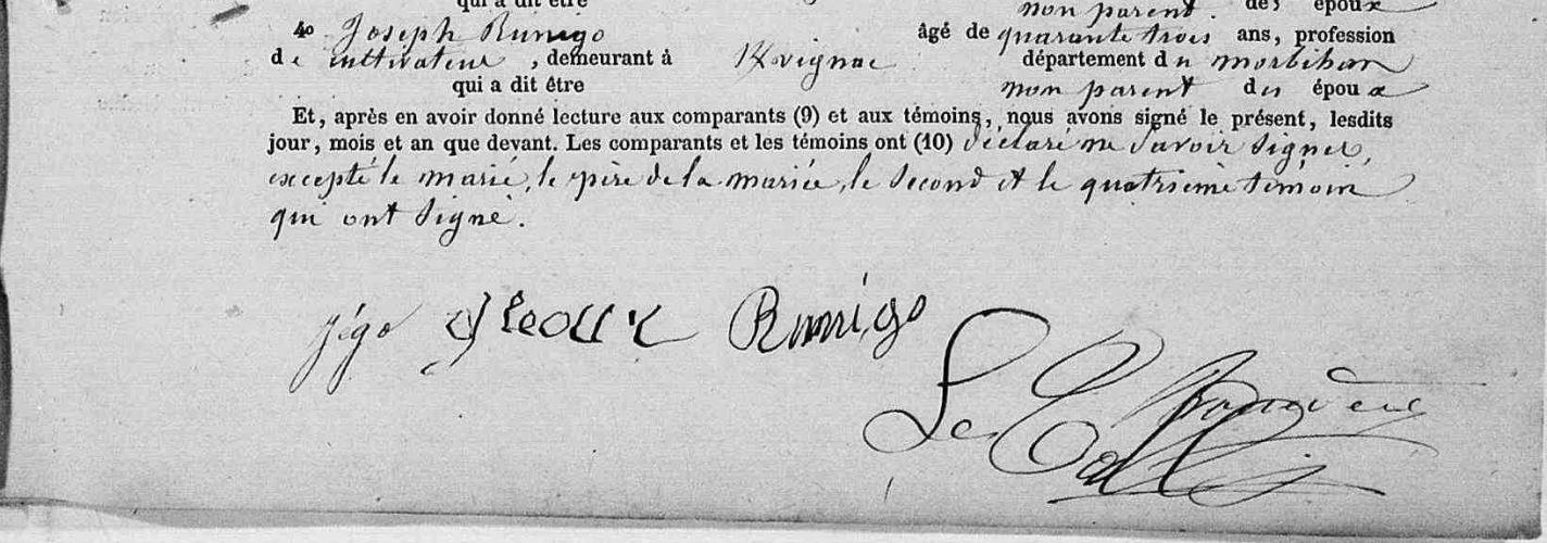 Mariage JEGO Pierre Joachim GLEOUR (LE) Jeanne Yvonne - 1871 - Kervignac - 3 |