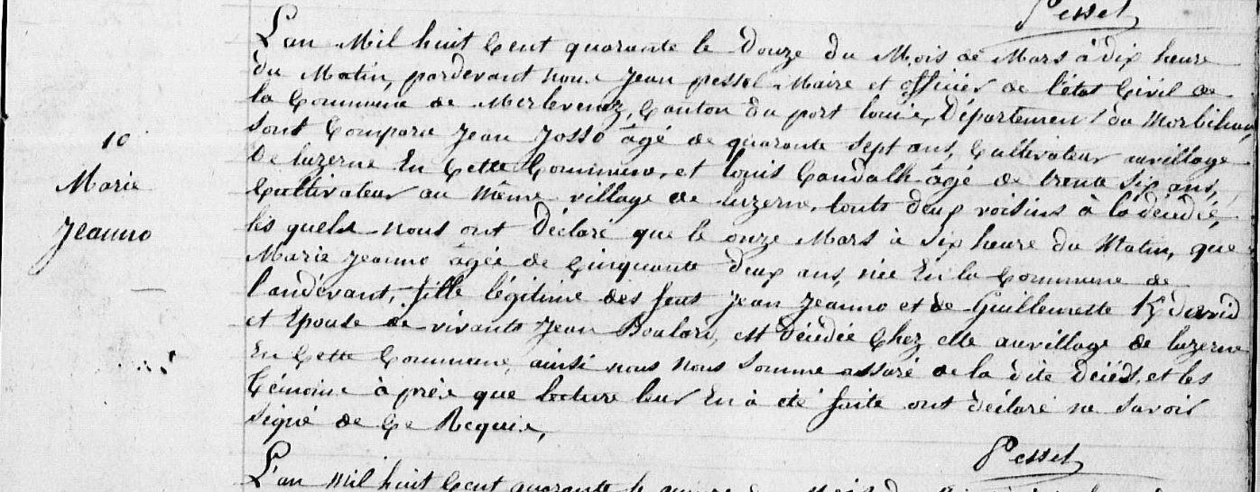 | Décès JEANNO Marie - 1840 - Merlevenez |