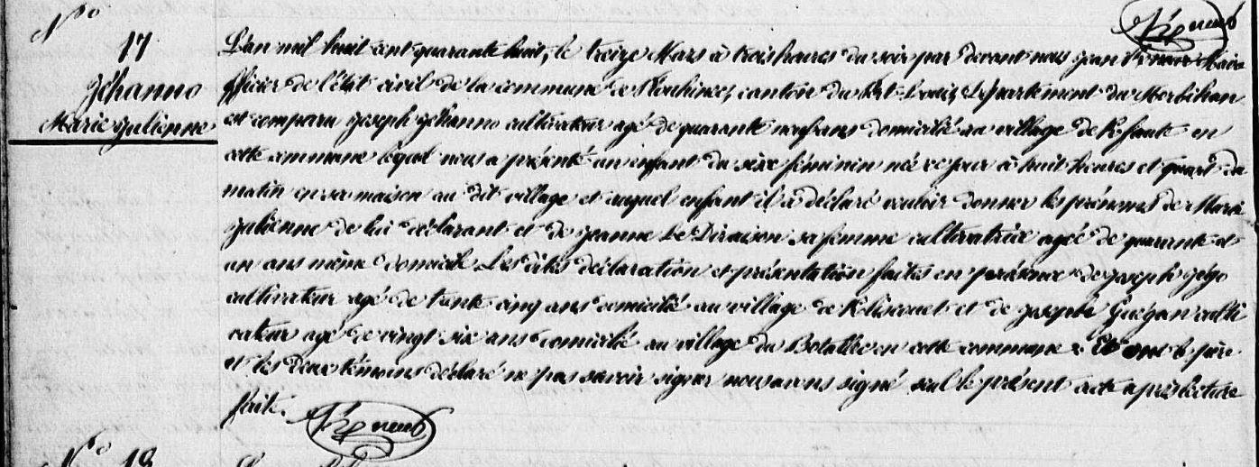 | 1 Note Générale : Marie Julienne est née jumelle, son frère, Joseph déclaré acte précédent |