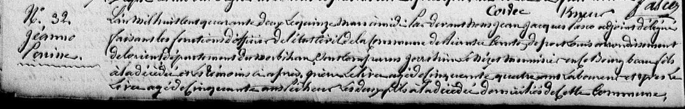 | 9. JEHANNO Marie Naissance : Date : ../../1775 Lieu : Landévant ? (56) |