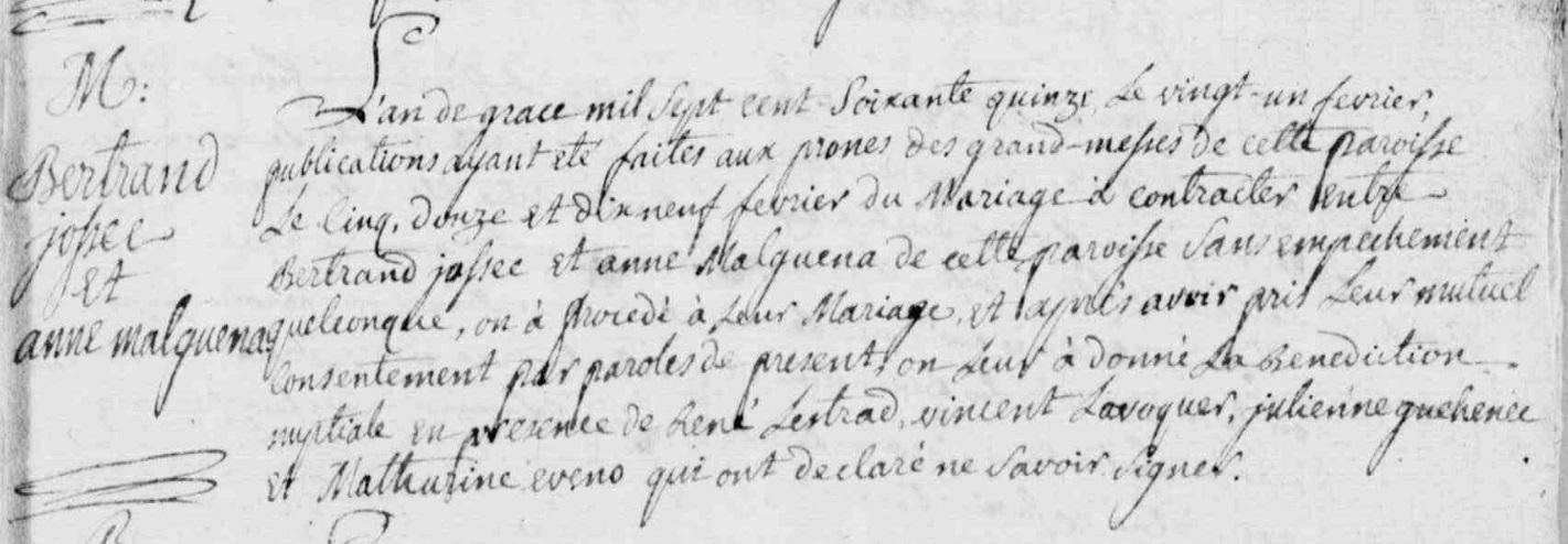 | Mariage JOSSEC Bertrand MALGUENAC Anne - 1775 - Camors |