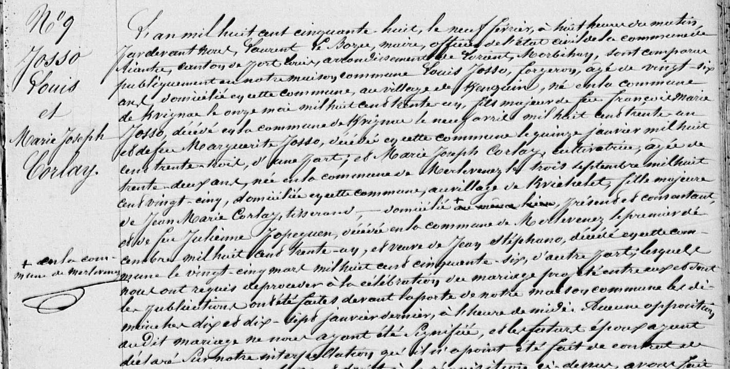 | Mariage JOSSO Louis CORLAY Marie Joseph - 1858 - Riantec - 1 |