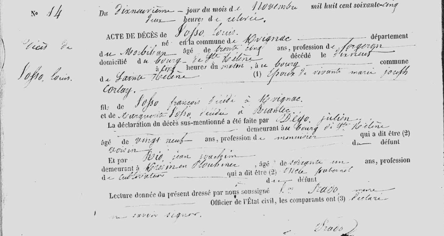 Décès JOSSO Louis - 1865 - Sainte-Hélène |