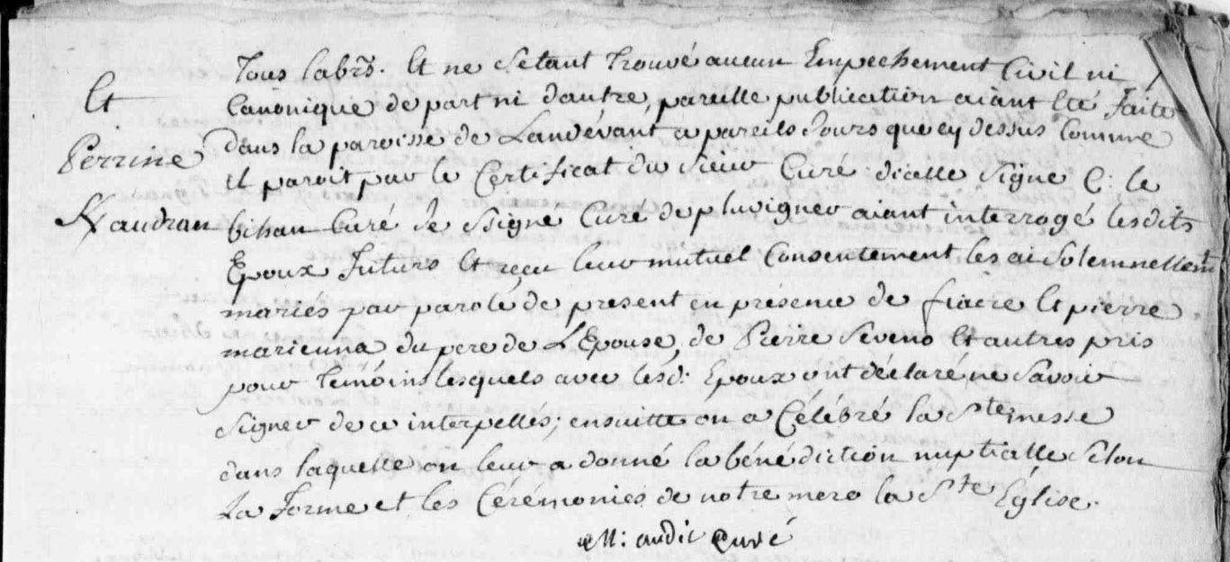 Mariage MARIENNA Claude KERAUDRAN Perrine - 1760 - Pluvigner - 2 |