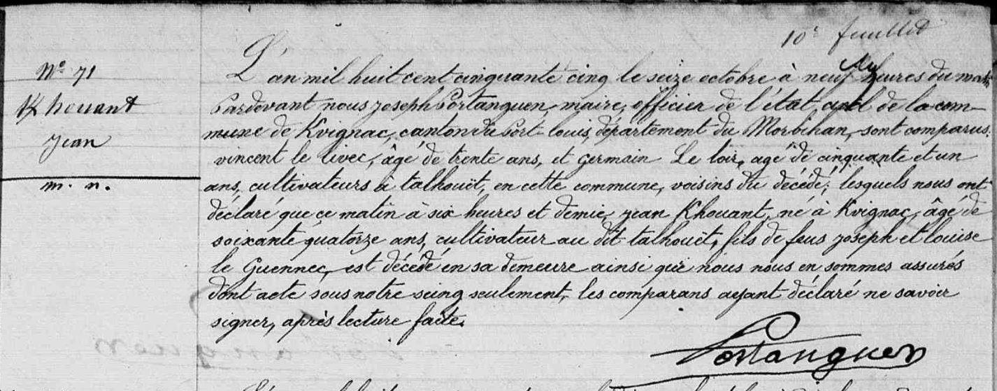 | Décès KERHOUANT Jean - 1855 - Kervignac |