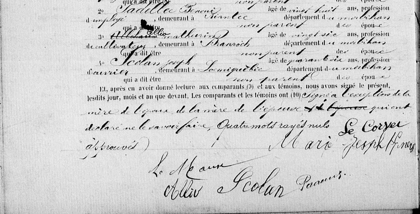 Mariage L'HERMITE Grégoire KERNER Marie Julienne - 1853 - Riantec - 2 |