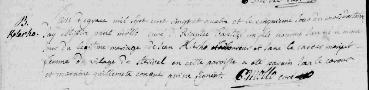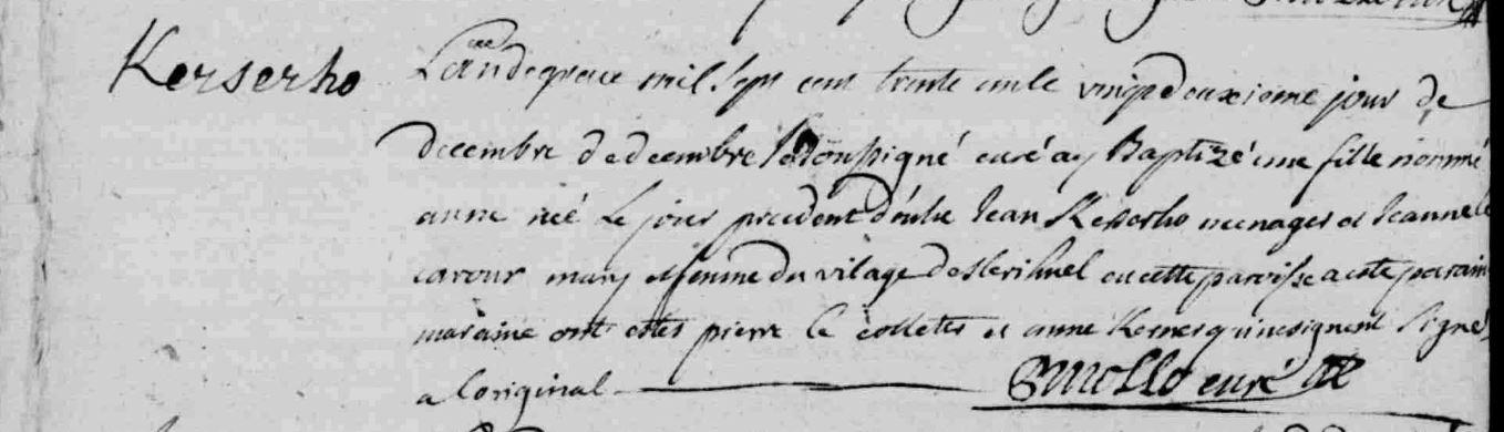 | Baptême KERSERHO Jan - 1724 - Riantec |