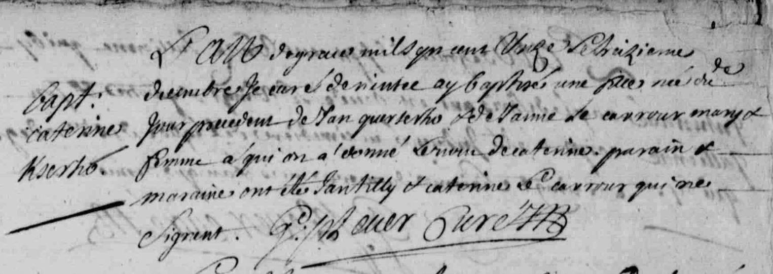 | Baptême KERZERHO Catherine - 1711 - Riantec |