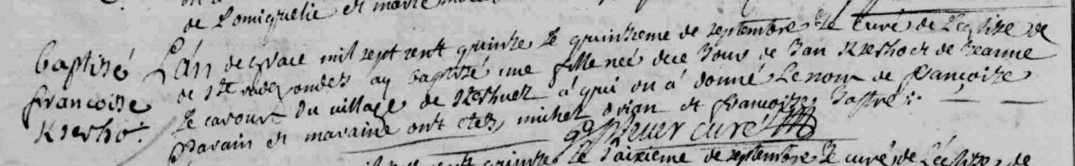 | Baptême KERSERHO Françoise - 1715 - Riantec |