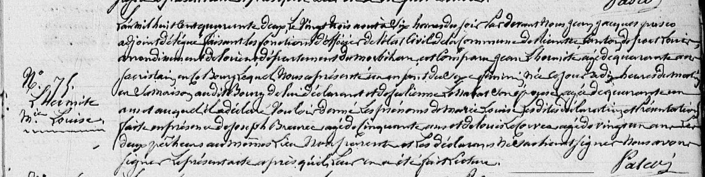 | Naissance L'HERMITE Marie Louise - 1842 - Riantec |