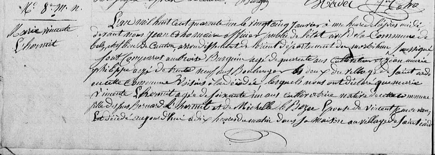 | Décès L'HERMITE Marie Vincente - 1841 - Belz - 1 |
