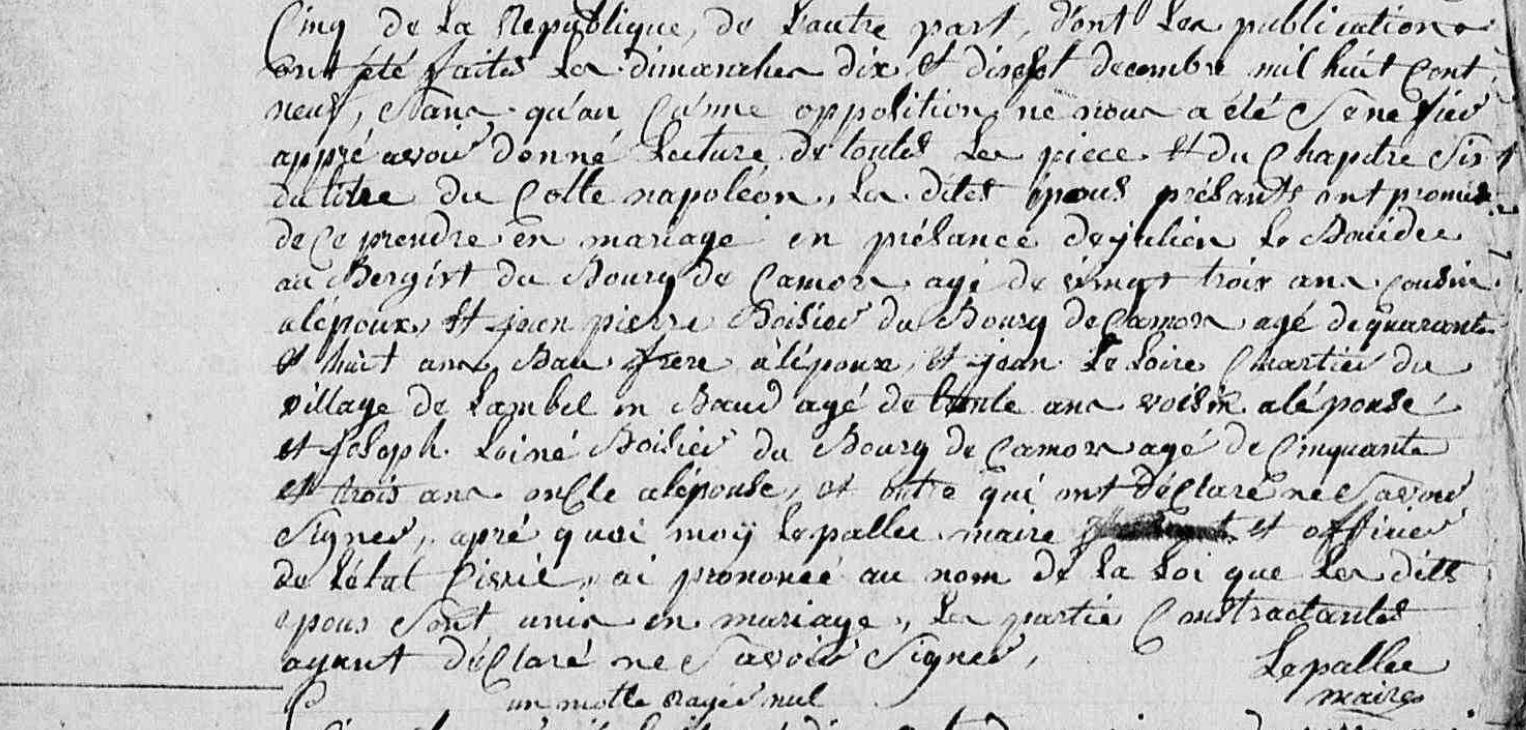 | Mariage MALGUENAC Joseph LAINE Marie - 1810 - Camors - 1 |