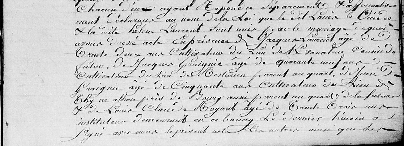 | 4. LAURENT Joseph Naissance : Date : 09/05/1752 Lieu : Plouay (56), Locunel |