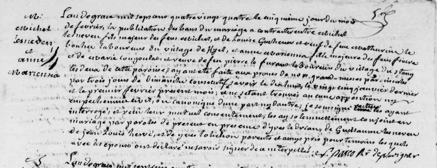 | Mariage LESNEVEN Michel MARIENNA Anne - 1784 - Pluvigner |