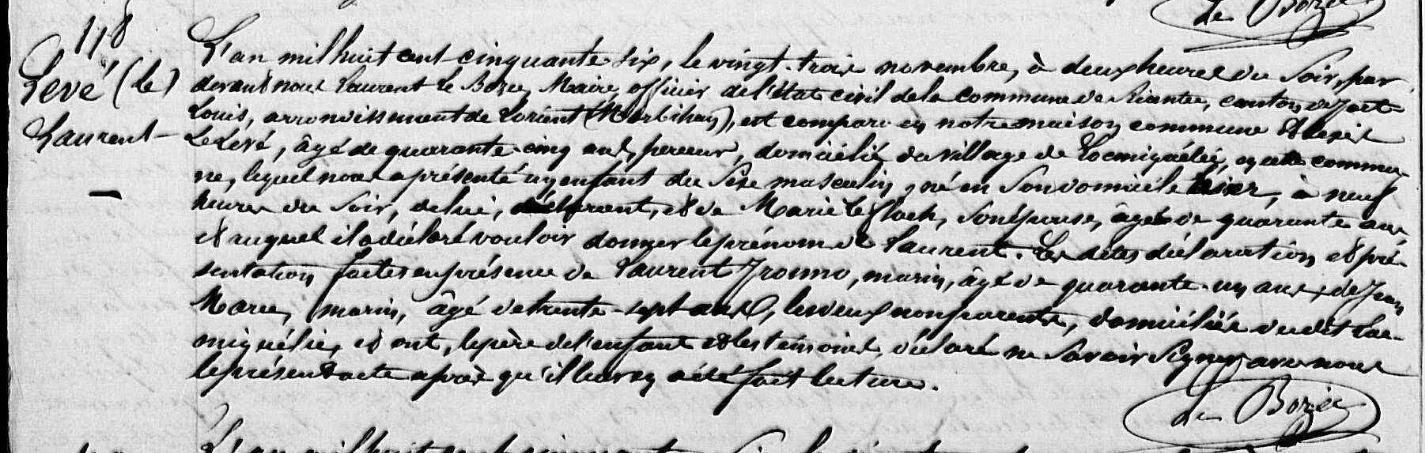 | Naissance LEVE (LE) Laurent - 1856 - Riantec |