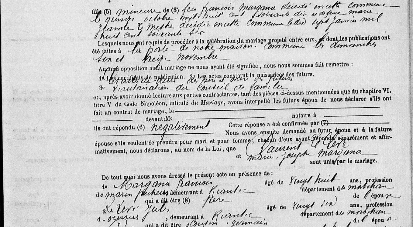 Mariage LEVE (LE) Laurent MARGANA Marie Josephe - 1881 - Riantec - 2 |
