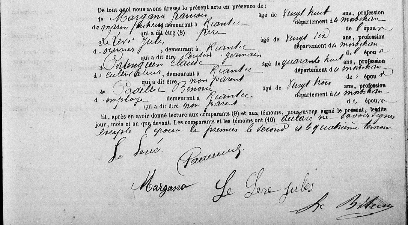 Mariage LEVE (LE) Laurent MARGANA Marie Josephe - 1881 - Riantec - 3 |
