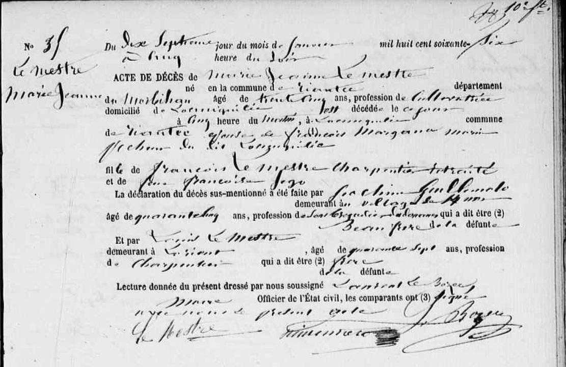 Décès MAITRE (LE) Marie Jeanne - 1866 - Riantec |