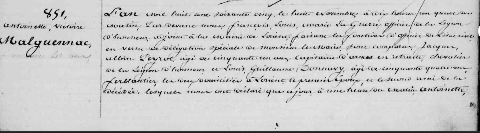 | Décès MALGUENAC Antoinette Victoire - 1865 - Lorient - 1 |