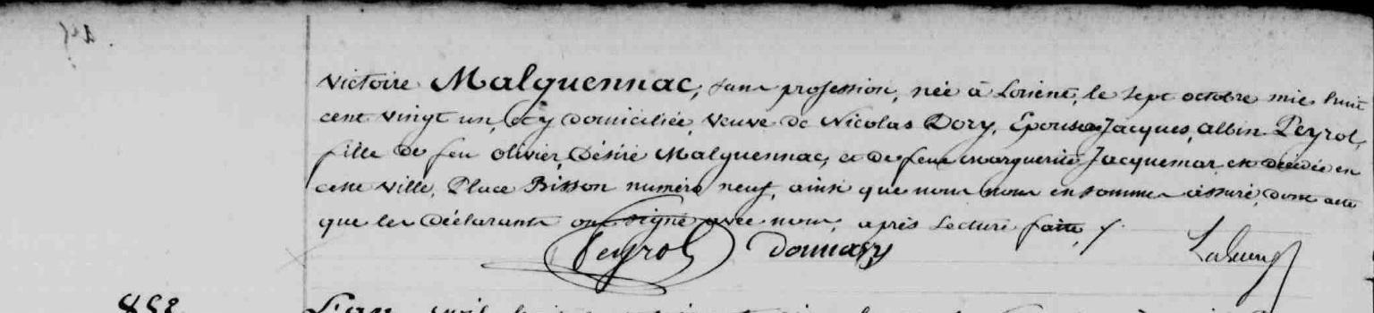 Mariage DORY Nicolas MALGUENAC Antoinette Victoire - 1845 - Lorient - 2 |