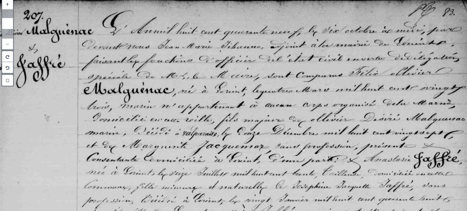 Mariage MALGUENAC Félix Ollivier JAFFRE Anasthasie - 1849 - Lorient - 2 |