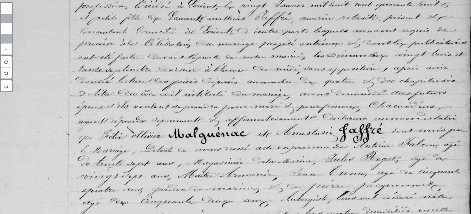 Mariage MALGUENAC Félix Ollivier JAFFRE Anasthasie - 1849 - Lorient - 1 |