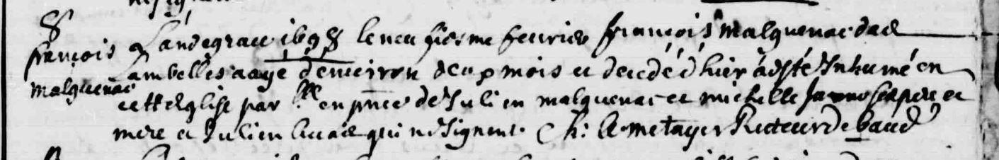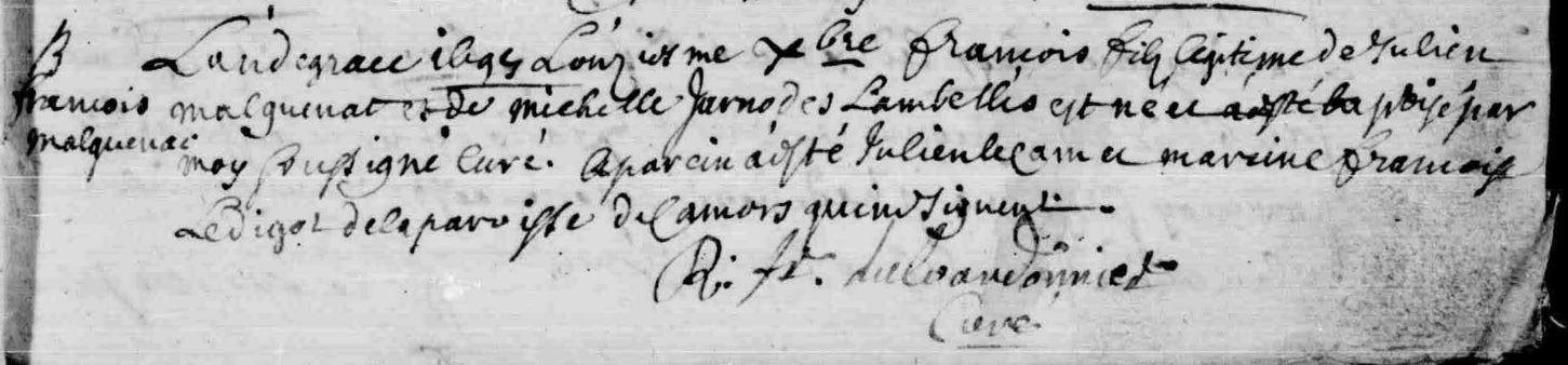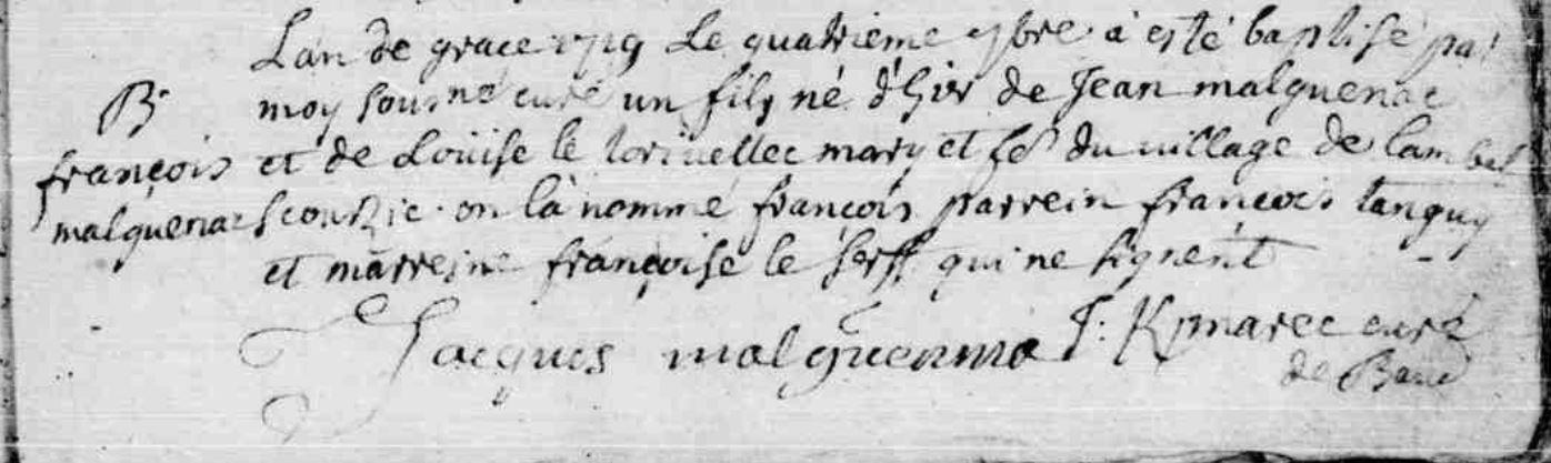 | Baptême MALGUENAC François - 1697 - Camors |