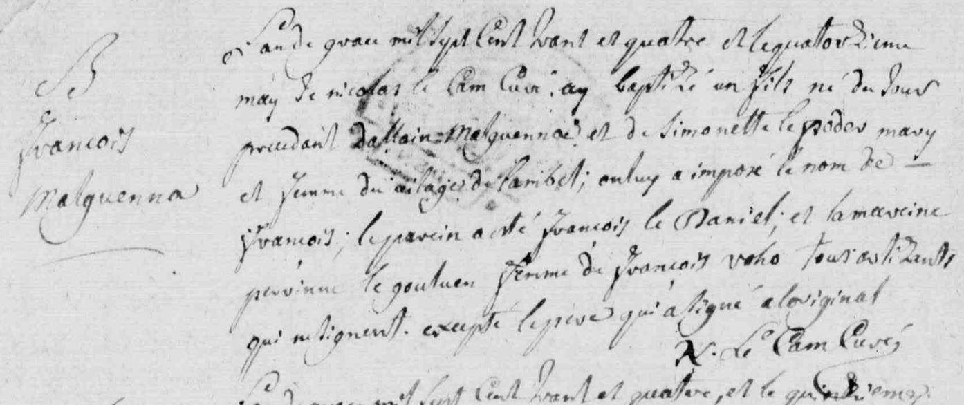 | Baptême MALGUENAC François - 1734 - Camors |