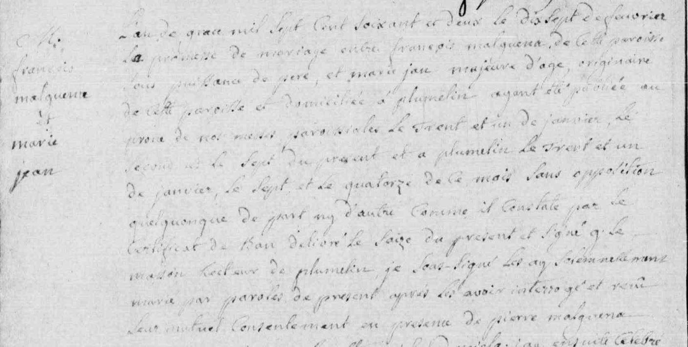 Mariage MALGUENAC François JEAN Marie - 1762 - Camors - 1 |