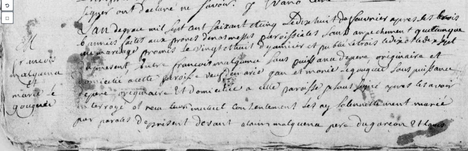 Mariage MALGUENA François GOUGUEC (LE) Marie - 1765 - Camors - 1 |