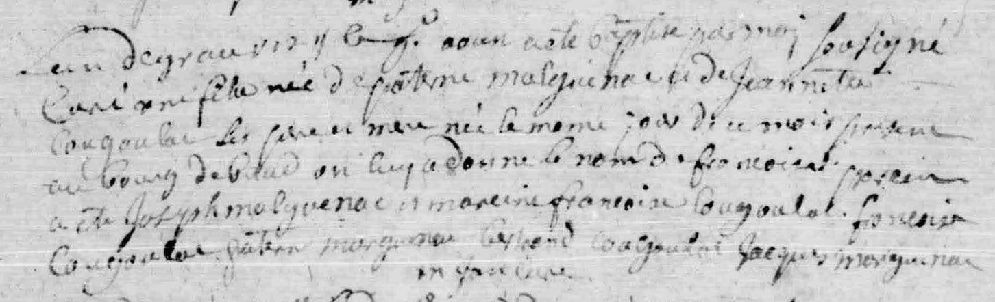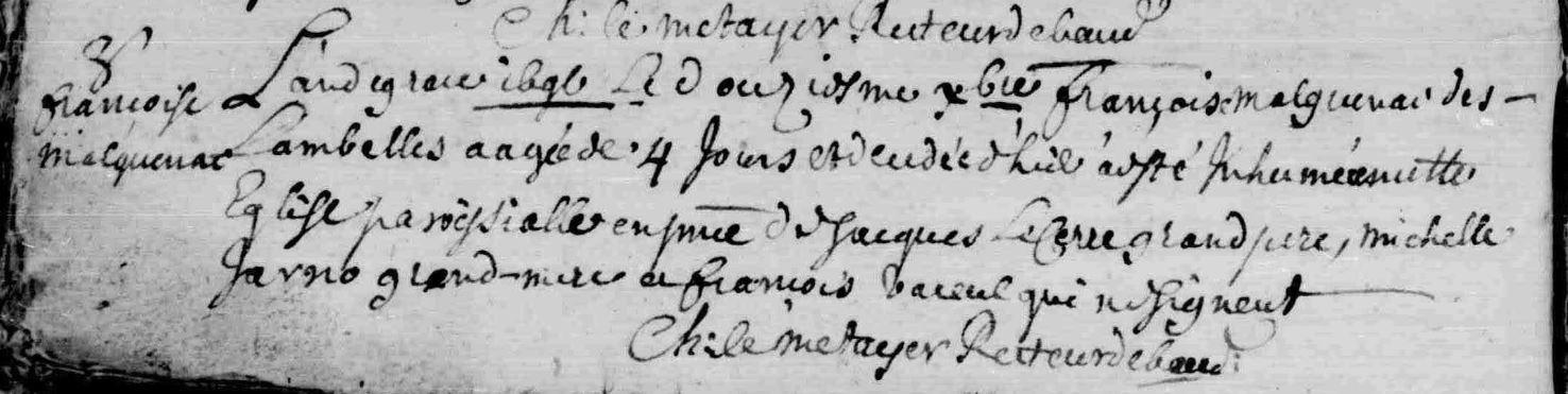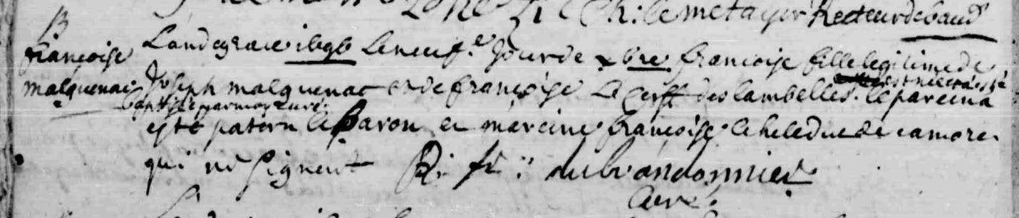 | Baptême MALGUENAC Françoise - 1714 - Baud |