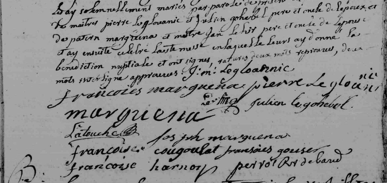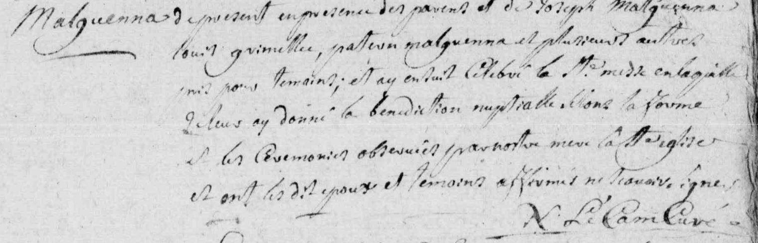 | Mariage MALGUENA François GOUGUEC (LE) Marie - 1765 - Camors - 2 |