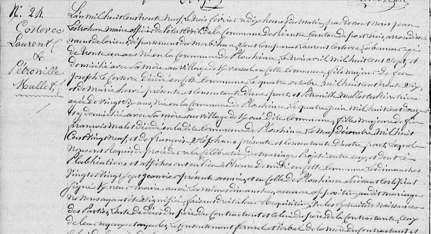 | Mariage COSTEVEC Laurent MALLET Pétronille - 1839 - Riantec - 1 |
