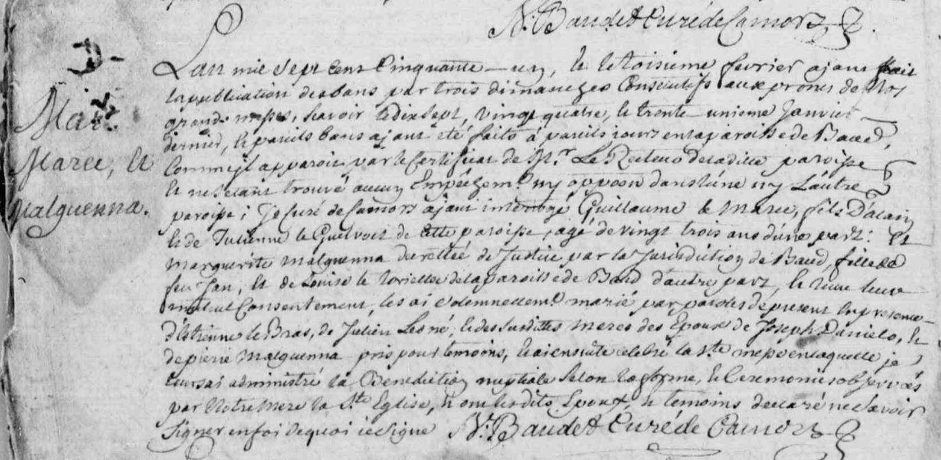 | Mariage MAREC (LE) MALGUENAC Marguerite - 1751 - Camors |