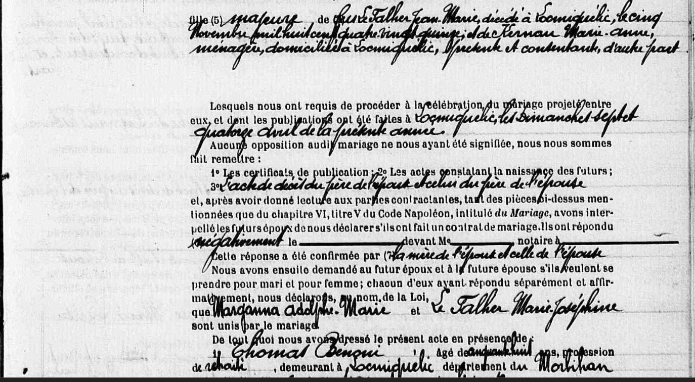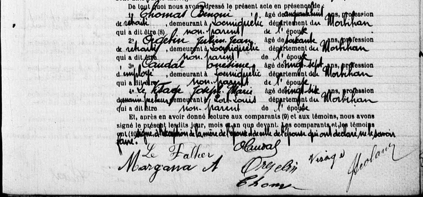 Mariage MARGANA Adolphe Marie FALHER (LE) Marie Joséphine - 1907 - Locmiquélic - 2 |