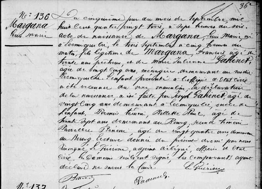 | Naissance MARGANA Louis Marie - 1883 - Riantec |