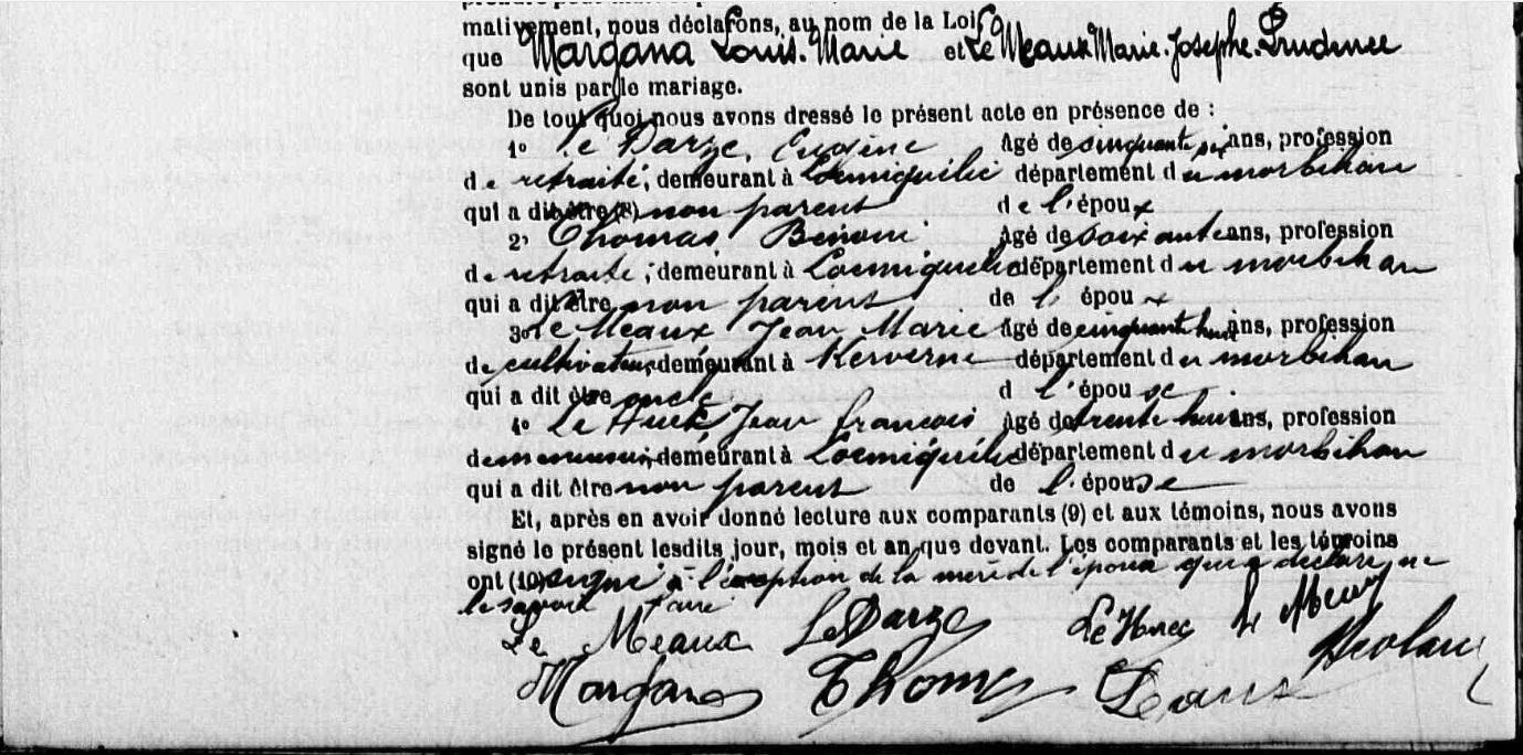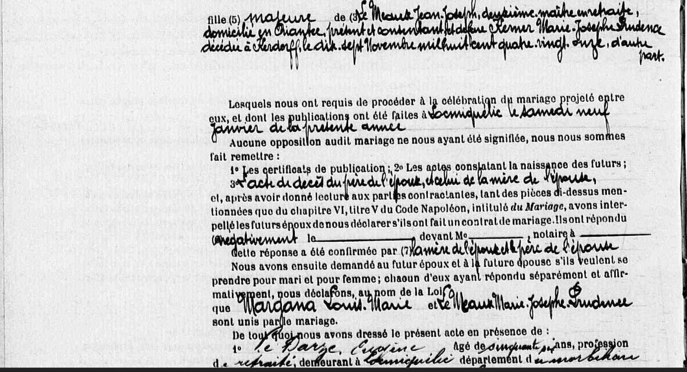Mariage MARGANA Louis Marie MEAUX (LE) Marie Josephe Prudence - 1909 - Locmiquélic - 3 |