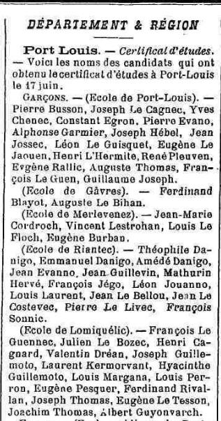 | 2. BER (LE) François Marie Naissance : Date : 20/05/1846 Lieu : Riantec (56), Gâvres |