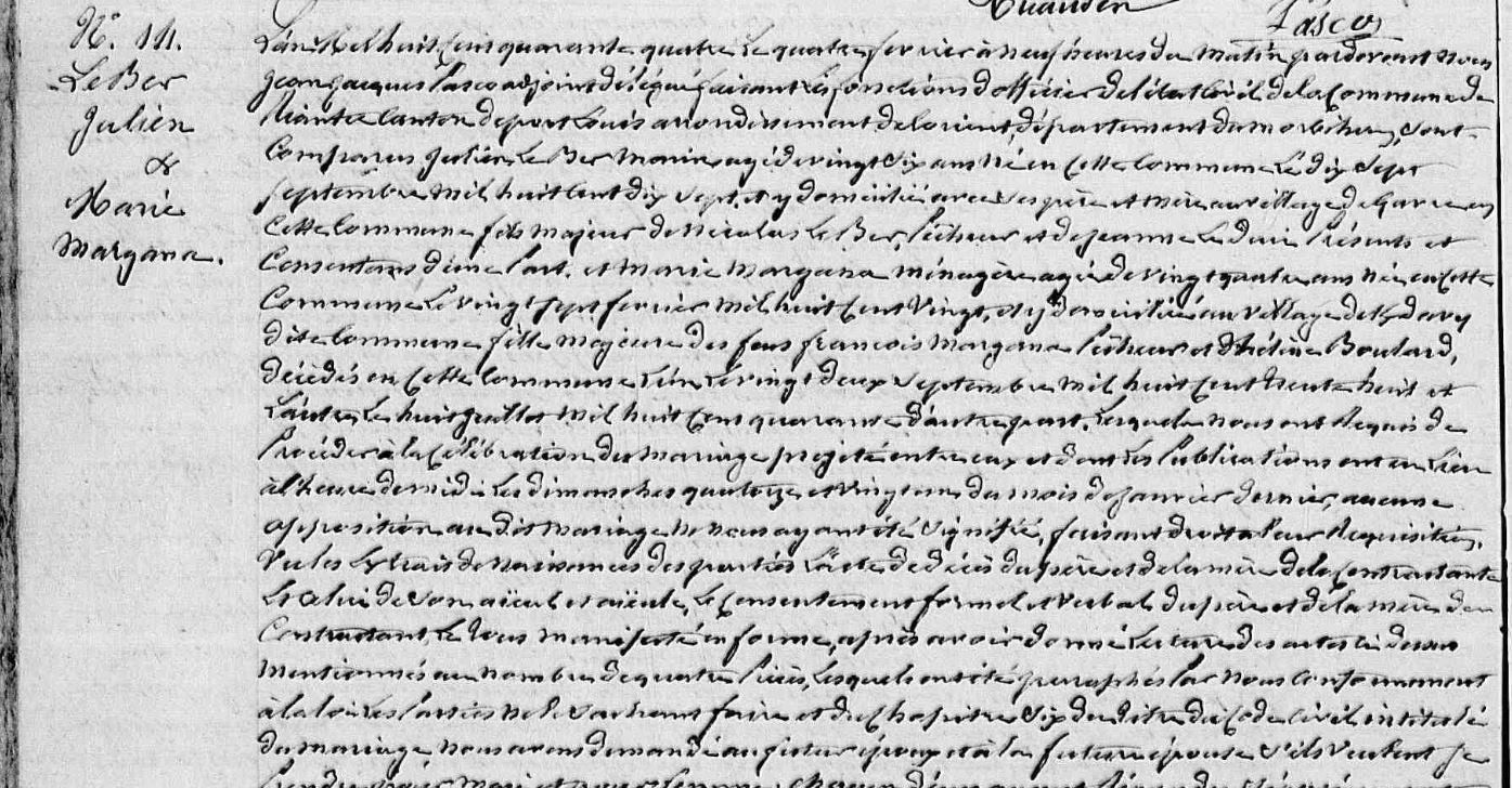 Mariage BER (LE) Julien MARGANA Marie - 1844 - Riantec - 3 |