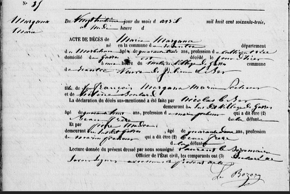 | Décès MARGANA Marie - 1863 - Riantec |