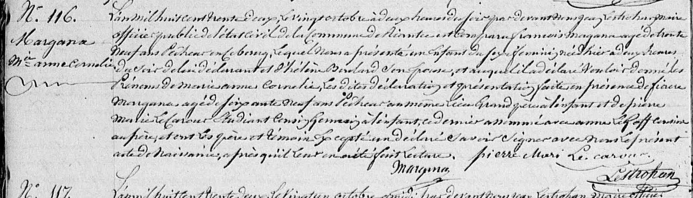 | Naissance MARGANA Marie Anne Cornélie - 1832 - Riantec |